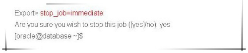 然后在 “Export> ”提醒符下输入号令:stop_job=immediate ,回车后,再输入yes确定竣事当前使命,即可准确终止正在进行expdp导出数据的使命。