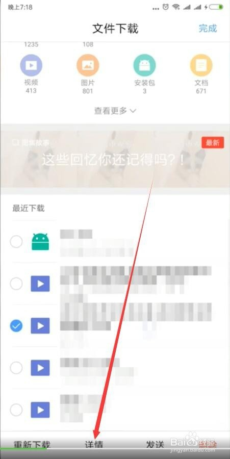 即可查看本身下载的文件;长按响应的文件,然后点击【详情;】