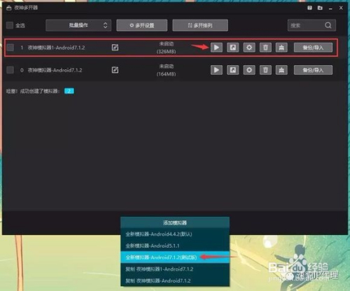 选择添加模拟器,保举安卓7.1版本,然后系统会主动安装,安装好后点箭头所指起头键运行,再反复之前的过程就可以了
