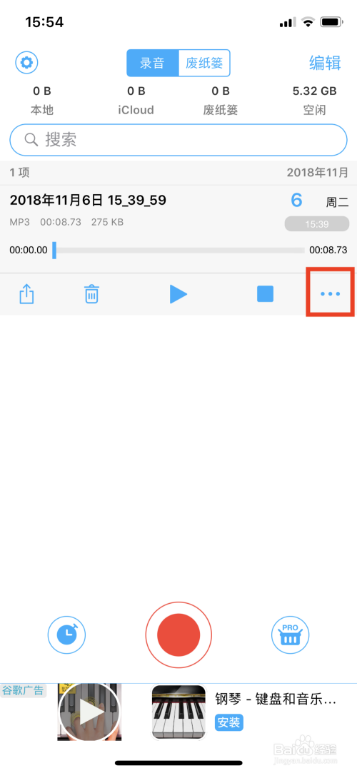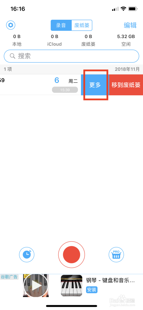 将该灌音从右标的目的左←滑动,可看到更多,点击进入;