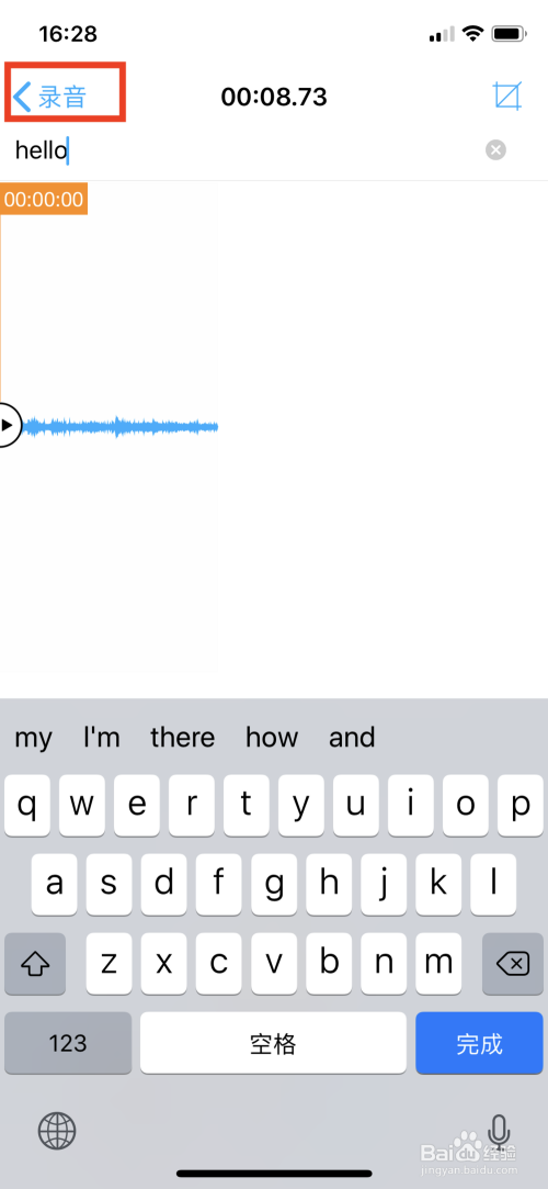 在顶部原灌音名一栏里输入新灌音名,点击完当作,并点左上角的返回灌音列表按钮