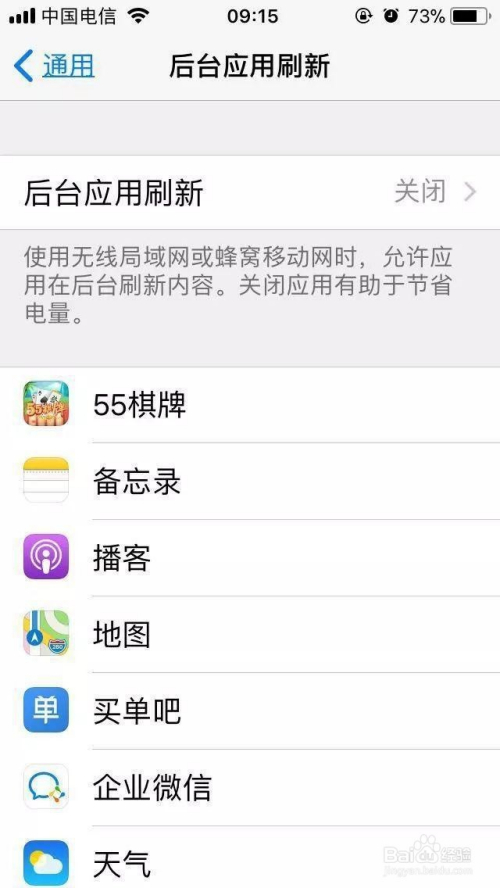 除了QQ、微信等通信东西可以开启此功能外,其他的应用都建议封闭此功能,如许可以年夜年夜削减后台应用不竭刷新发生的耗电问题。出格是在你手机应用良多的环境下,此功能就是一“耗电杀手”。