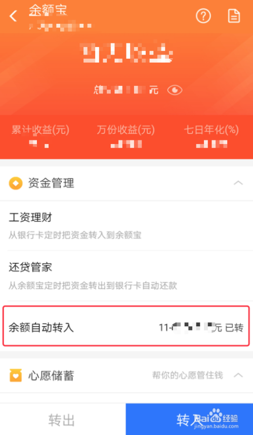如许就可以看到关于余额主动转入的开启按钮,点击按钮