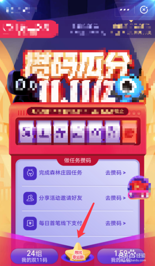 打开双11码的活动界面后,点击最下面的【寻找幸运新】小图标