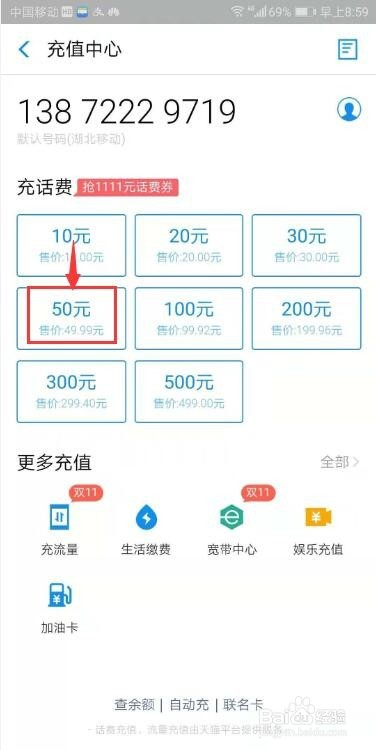充值后再查询一下余额,就发现多出了适才充值的50元,申明充值当作功。