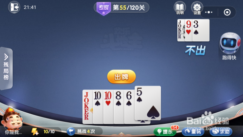 第55关先打出一张9,跑得快打出一张10。