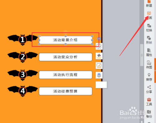 方式二:同样,可以看到我们右边有一个操作条,有动画这个操作,点击即可