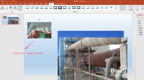 先选中此中的一张图片,经由过程图片周围的节制点将其缩小到合适大小,然后右键缩小的图片,执行查看大小和位置号令,然后在打开的设置图片格局中将该缩小后的图片大小的宽度与高度的数值记实下来。