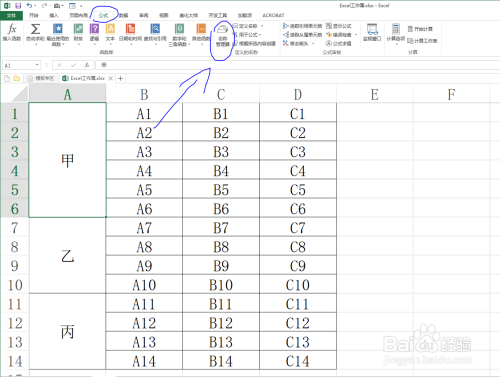单击菜单栏中的公式号令,然后界说的名称功能区找到名称办理器按钮。