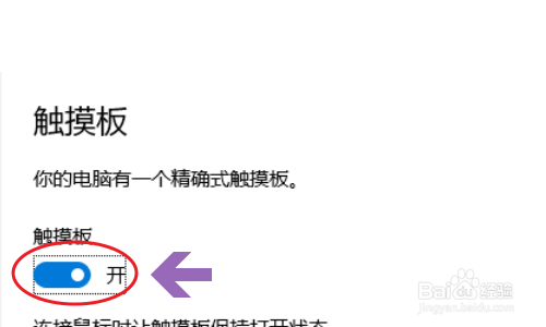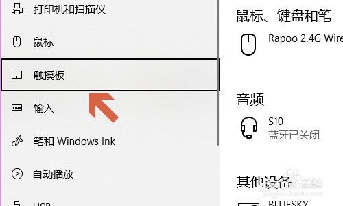 点击回车键今后,就切换到了设备页面,在该页面的左侧点击“触摸板”,然后经由过程摆布按键将其打开,如许就开启完毕,今后即使没有鼠标照样可以操作电脑了;