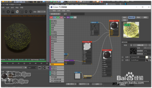 新建一个夹杂材质,将发光材质拖到夹杂材质1的选项上,将模子外表材质拖到材质2的选项上。将夹杂材质添加到圆球上。
