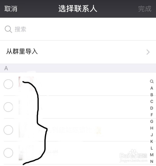 然后选择你要添加的人,然后点击右上角的“完当作”