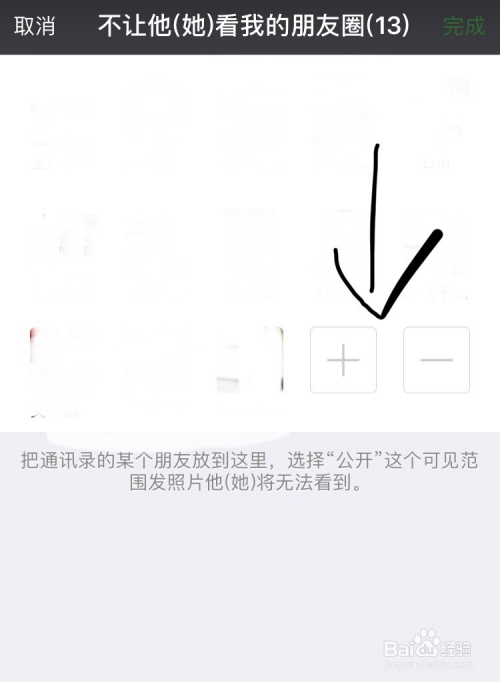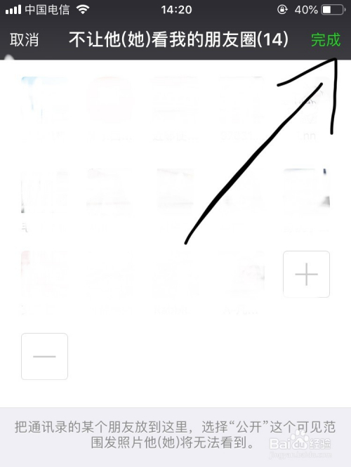 然后会跳到如图所示的页面,就可以看到你添加进来的人,然后点击右上角的“完当作”,如许被添加进来的人就看不到你的朋友圈内容了。
