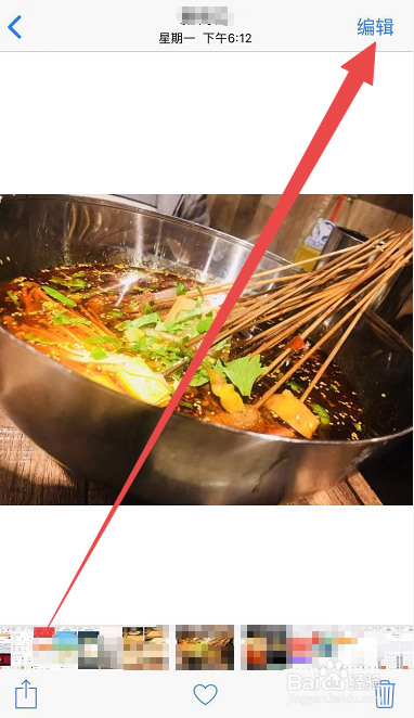 我们打开手机内的照片功能,然后从中找到想要调节角度的照片,在照片的显示页面内,我们点击右上角显示的“编纂”按钮。
