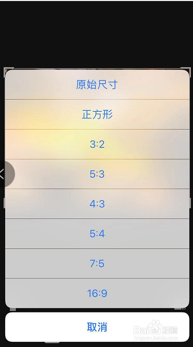 若是我们要对图片的尺寸进行调整的话,可以点击下图中所示的图标,然后在显示的选项中选择合适的尺寸点击即可。若是尺寸没有合适的,点击最下面的打消按钮即可。