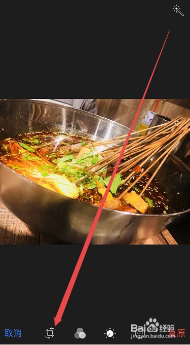 点击“编纂”按钮之后,图片的显示就会酿成下图所示的样子,四周呈现了良多图标,我们点击图中箭头所指示的图标。