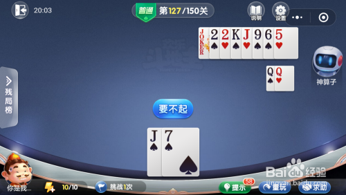 第127关先打出4张10带一张5和一张4,接着打出一对3。