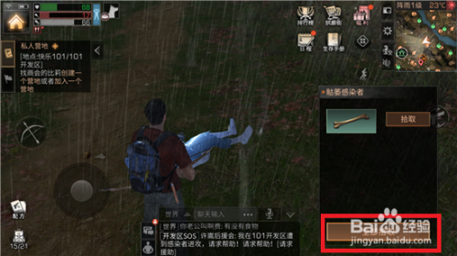 除了可以在动物身上获得骨头之外,还可以在传染者身上获取骨头,击杀传染者后同样点击【搜刮】。