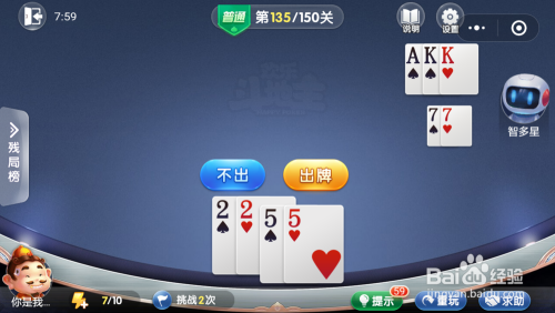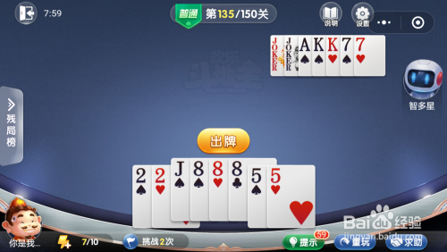 智多星打出一对7,我打出一对2,接着打出一对5就过关了。