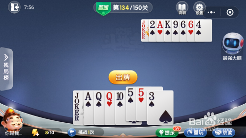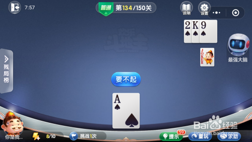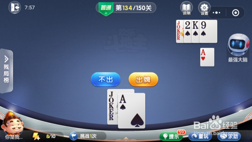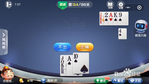 最壮大脑打出一张年夜王,接着打出一张2一张9,然后我打出一张A就过关了。