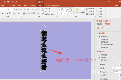 选中文本框,按快捷键Ctrl+D复制一个出来,按键盘上的上下摆布键移动位置使其重归并微微错开;然后多次按Ctrl+D复制多个出来。