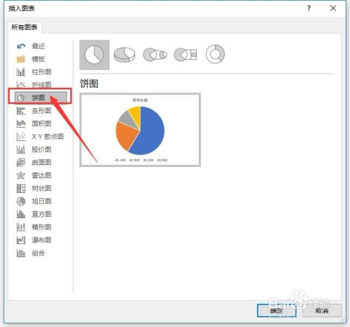打开文档,点击-插入-图表,弹出窗口,选择饼状图,然后确定。