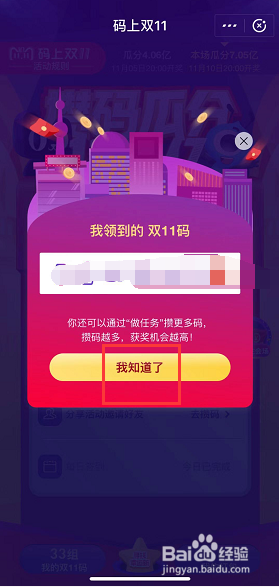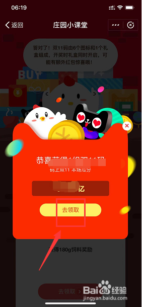 回覆准确后,先点击去领取获得一注双11组码,如下图所示