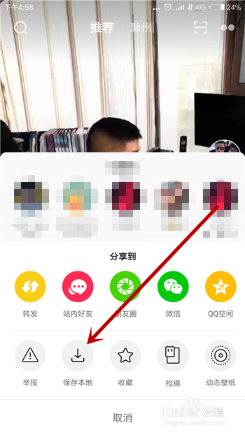 如许在打开转发界面就能找到【保留当地】选项了,点击就可以下载视频。