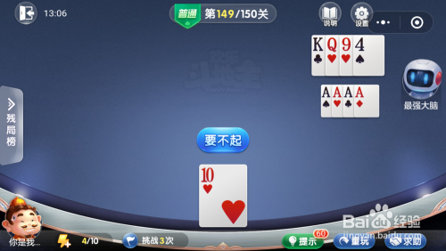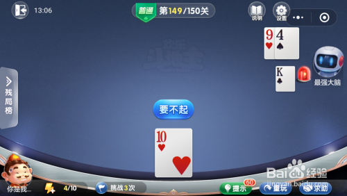 最壮大脑打出一张K,接着打出一张4,然后我打出一张10就过关了。
