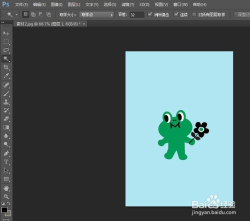 第三步:在左侧东西栏中选择“魔棒东西”,选择需要点窜颜色的区域。