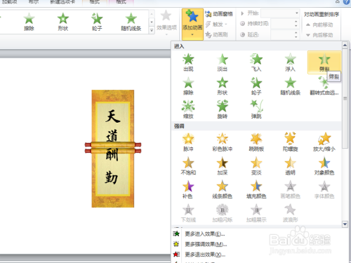 操纵ppt建造卷轴动画,本家儿要操纵了劈裂和路径动画结果,此刻就分享设置的具体操作过程和截图,仅供参考。