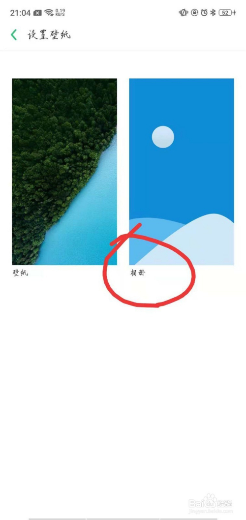 打开设置壁纸,有壁纸和相册,选择相册。