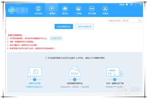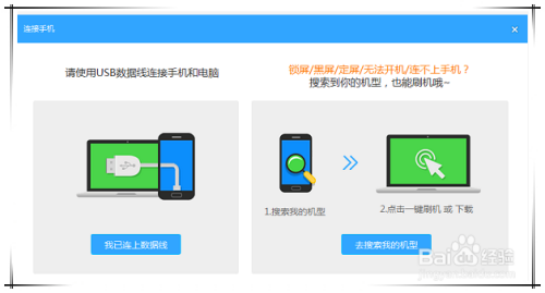 用数据线将手机毗连到电脑上,然后在软件界面点击“一键刷机”按钮,按照软件提醒,打开手机的USB调试功能,软件会主动匹配适合手机的刷机包。