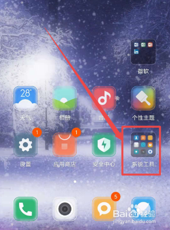 解锁之后,点击桌面上面的 系统东西 选项;然后在弹出的页面中点击 屏幕录制 选项。