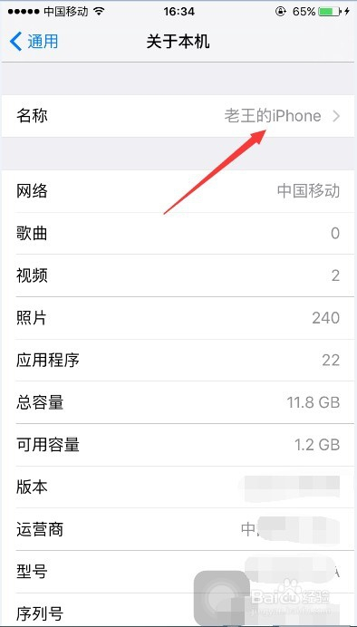 进入关于手机之后,可以看到你手机今朝所利用的名称,以及容量等一些根基信息,点击进入名称即可点窜,如图所示。
