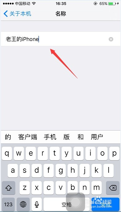 进入名称点窜后,点击更名字或者后面的叉号,即可敌手机名称进行点窜,输入你的新名称就可以了,如图所示。