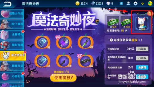 当魔杖利用次数达到50次的时辰,就可以领取宠物虎灵猫了,如下图所示