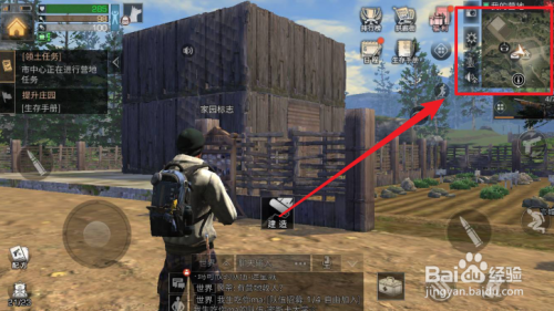 我们来到本身的营地,进入到本身的家园内,在家园中点击右上方的小地图。