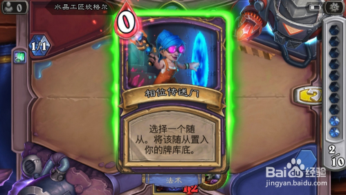 炉石传说陈述年夜王第二步:打出手中牌相位传送门,将敌方侍从加拉克苏期年夜王置于已方的牌库底。