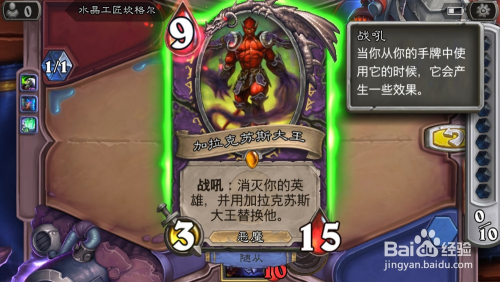 炉石传说陈述年夜王第四步:打出手中牌“拉克苏期年夜王”,覆灭已方英雄,并替代它。