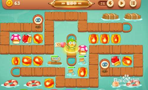继续清理障碍物,然后在双方出怪口各弥补一个蘑菇,用来减速和获取资金。