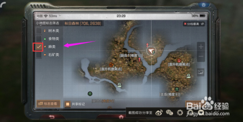 点开地图后,在地图中,我们只是单单的勾选【麻类】,如图。