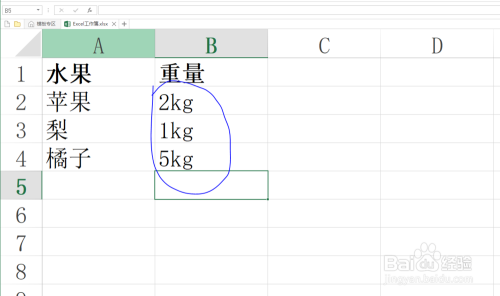 为了便于理解,教程以下列数据为例,如图所示,因为B列中的数值带有单元,所以Excel无法对其进行计较。