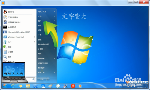 桌面、使命栏、开始菜单等所有界面的文字和图表都变年夜了。