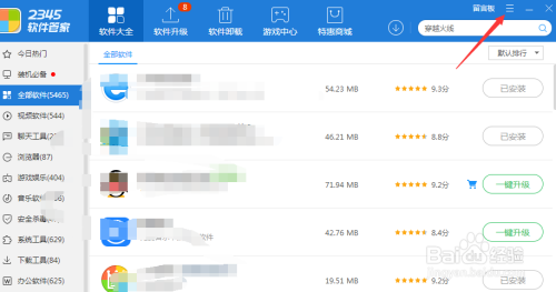 打开2345软件管家,点击页面右上角的三横线。