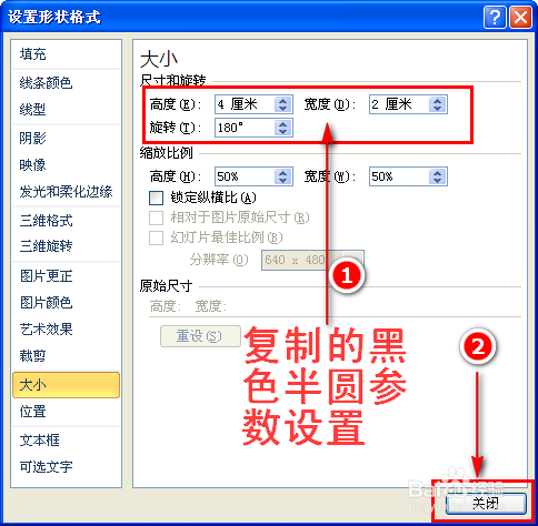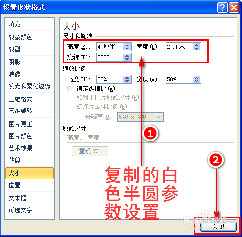 在对话窗口中,我们将图形的高度和宽度设置当作一样的数值(例如8厘米),然后点击“封闭”按钮,如许一个圆形就设置好了。如图所示: