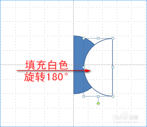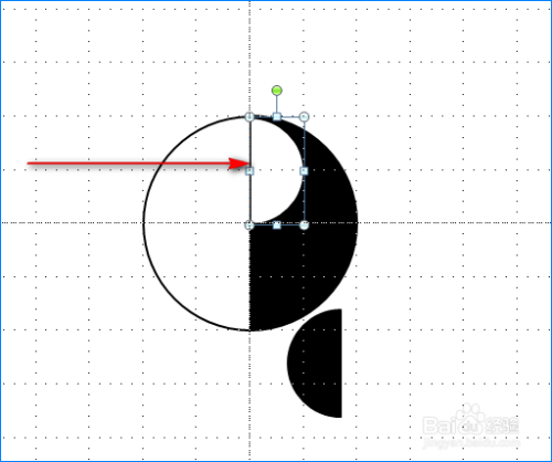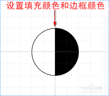 将获得的半圆再复制一个,并将复制后的半圆填充白色和扭转180°,接着将两个半圆拼在起来,酿成一个圆形。然后将左边的半圆边框颜色设置为黑色,将右侧的半圆填充颜色和边框颜色都设置为黑色。如图所示: