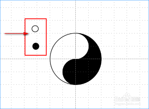 将此中一个小圆的填充颜色和边框颜色都设置为黑色,再将另一个小圆边框填充颜色设置为白色,边框颜色设置为黑色。最后将黑色小圆放在白色区域的恰当位置,将白色小圆放在黑色区域的恰当位置,如许我们的八卦图就做好了!如图所示: