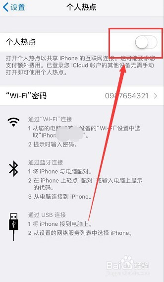 进入“小我热点”设置界面之后,点击小我热点按钮,将其滑动到左边