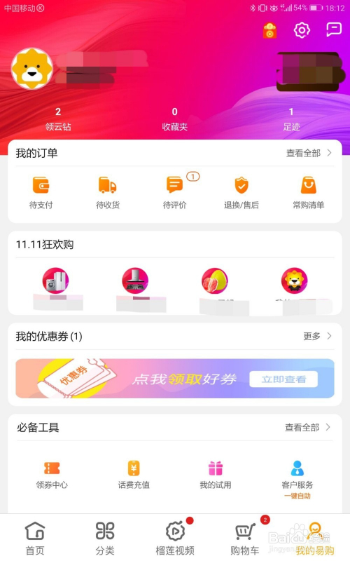 然后,在苏宁易购的小我页面,我们点击右上角的设置图标。